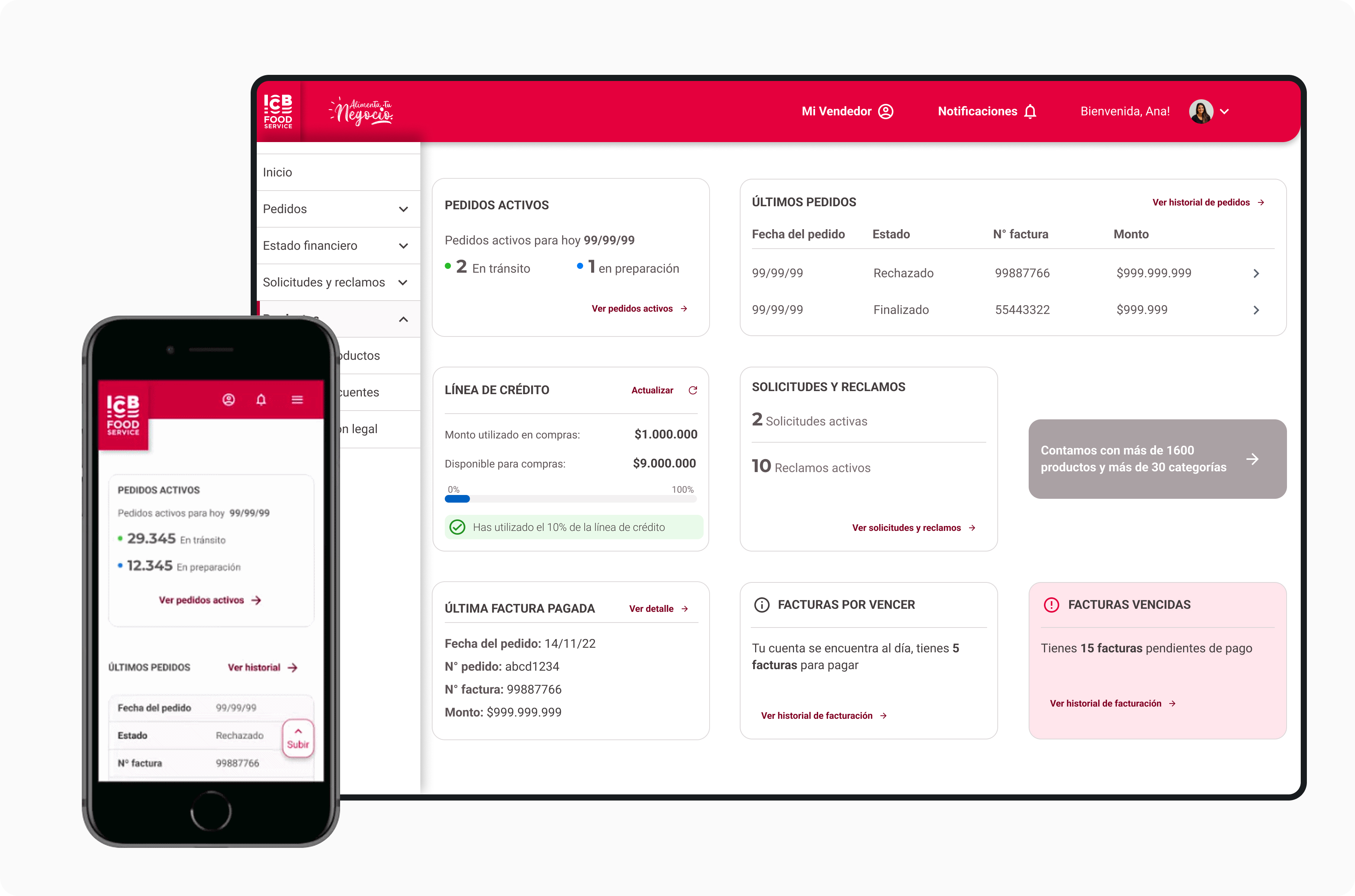 ICB Food Service es líder consolidada en el sector food service de Chile. A pesar de su posición de mercado, la plataforma digital existente presentaba problemas que limitaban la eficiencia de la operación y la experiencia de los usuarios: